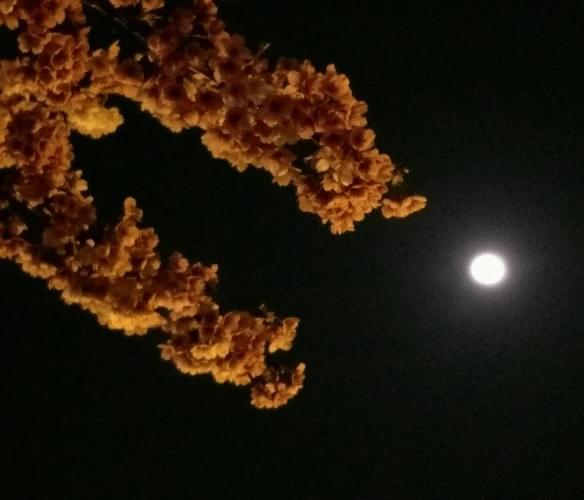 「恒與如來共宿」──這是修學者永不可忘卻的目標與仰望。置上花間明月,意指「華嚴大教」,因「華」即「花」的古字。