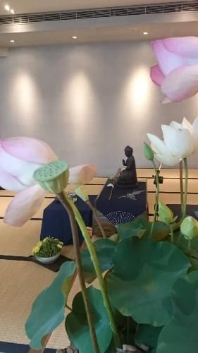 5月14日,浴佛節法會,荷風清浥。負責插花的玉秀扛抬了許多荷花、蓮花布置場地。新移民舞團以新編〈迦陵頻伽〉獻舞供佛。