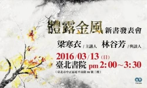 3月13日,《體露金風》于「台北書院」的新書座談會,主題:〈禪者的兩刃交鋒〉。